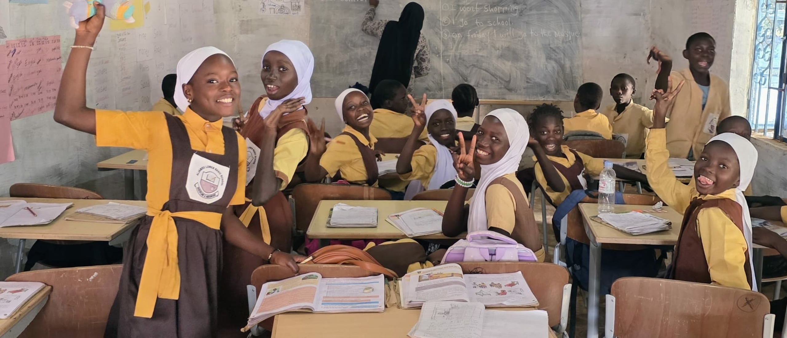 Na een warm onthaal door de kinderen, leraren, hoofdmeester en Musa, onze contactpersoon ter plaatste, is er een rondgang geweest over het terrein om de schoolgebouwen, docentenhuis, keuken en bibliotheek te bekijken.