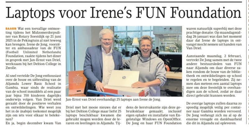 Het Deltion College uit Zwolle heeft 25 zeer bruikbare laptops gedoneerd voor de Aljamdu Lower Basic School!